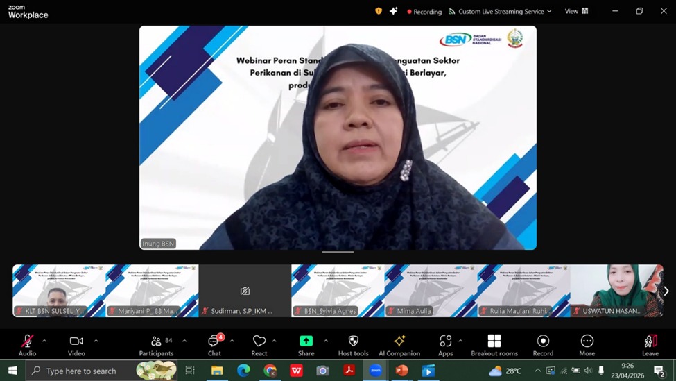 Sementara itu, dalam pemaparannya, Fasilitator Pembinaan SNI BSN, Lyonni Ayu Evelhin, menekankan bahwa penerapan Standar Nasional Indonesia (SNI) bukan hanya soal kepatuhan regulasi, tetapi juga strategi untuk meningkatkan kualitas, keamanan, dan kepercayaan konsumen terhadap produk perikanan.