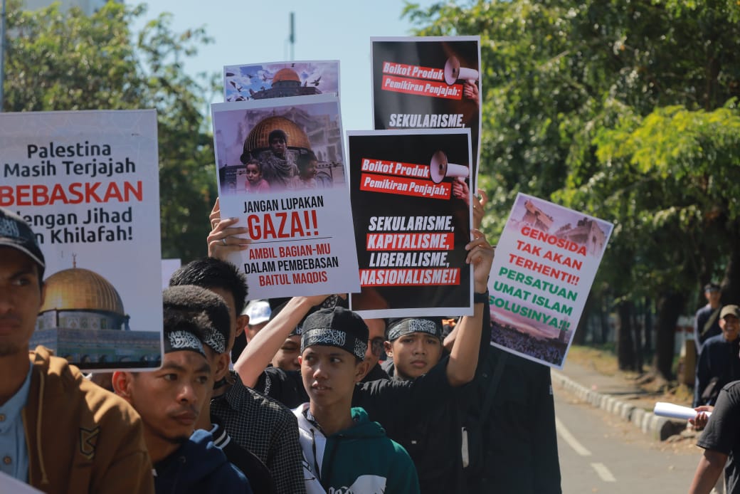 Koordinator Lapangan, Bung Nawir, mengatakan aksi ini sebagai bentuk dukungan saudara sesama muslim di Gaza yang mengalami penjajahan dan genosida di bumi Palestine oleh Kafir Penjajah Israel.