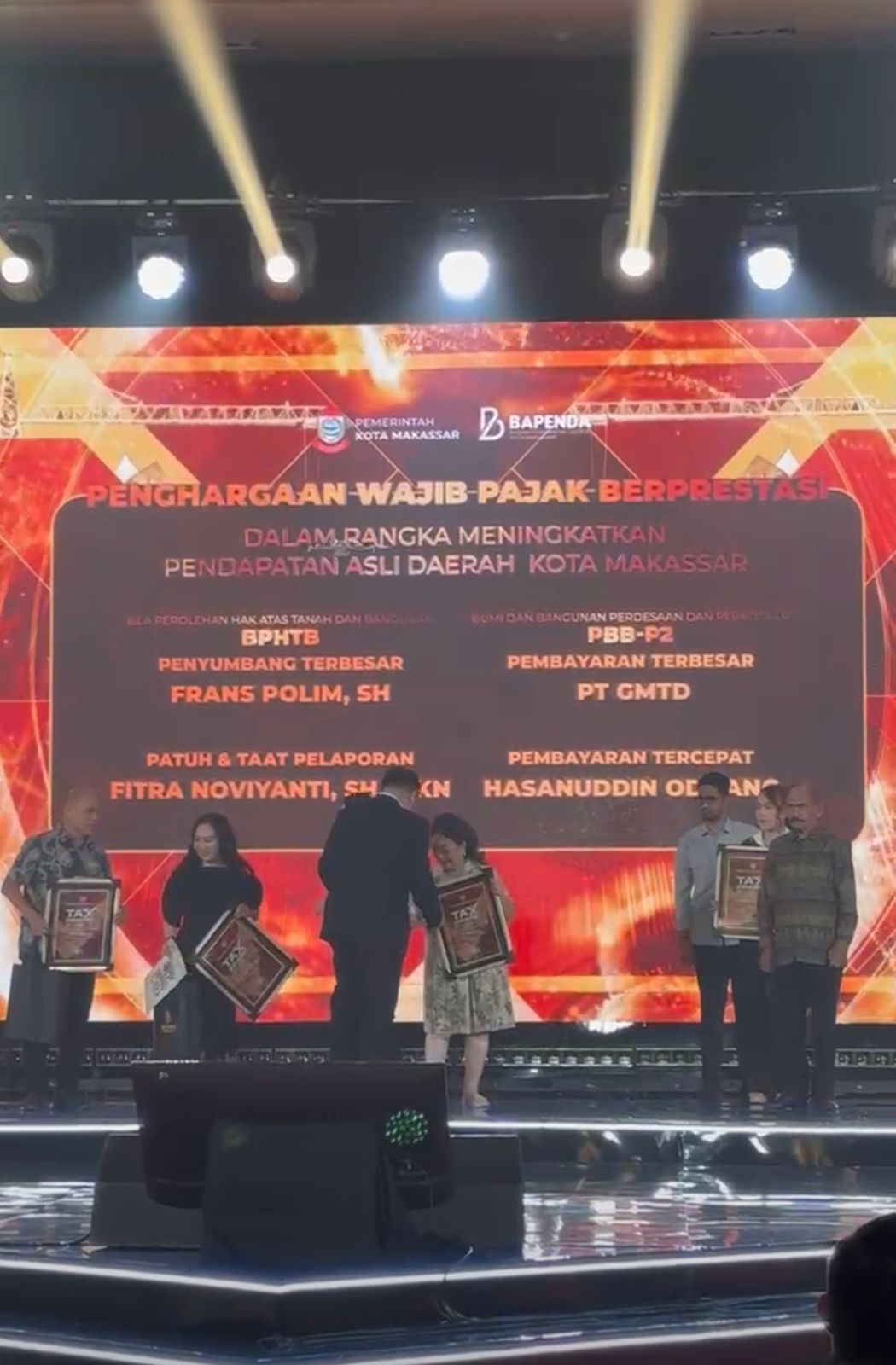 Penghargaan diserahkan langsung oleh Kepala Bapenda Kota Makassar, Andi Asminullah, dalam malam apresiasi Tax Award 2025 yang digelar di Hotel Claro Makassar, Selasa (9/12/2025).