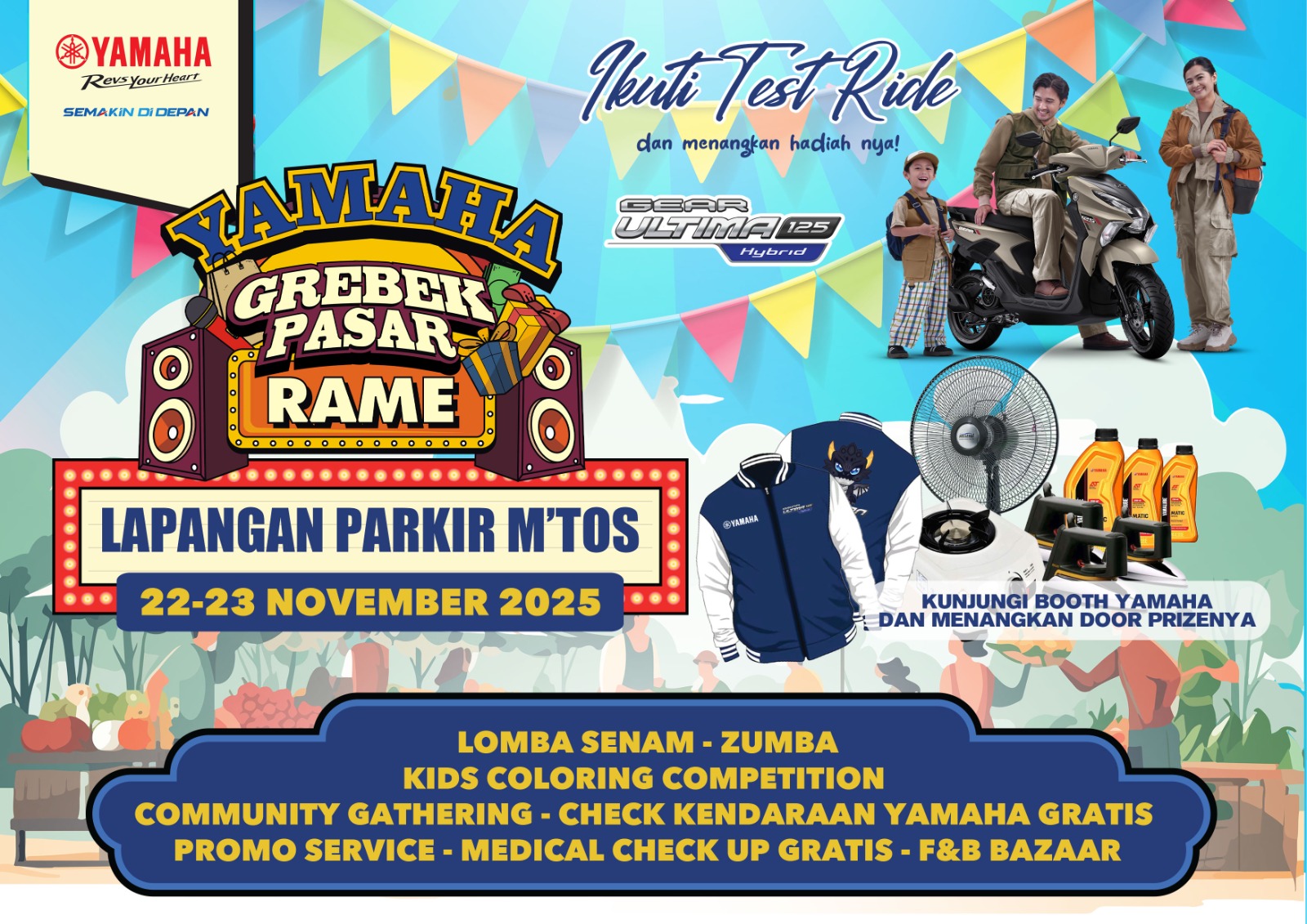 SULSELPEDIA – Grebek Pasar Rame Yamaha Kembali hadir di Makassar. Kali ini, salah satu program Yamaha Indonesia ini akan hadir di Parking Area MToS, pada 22 dan 23 November 2025.