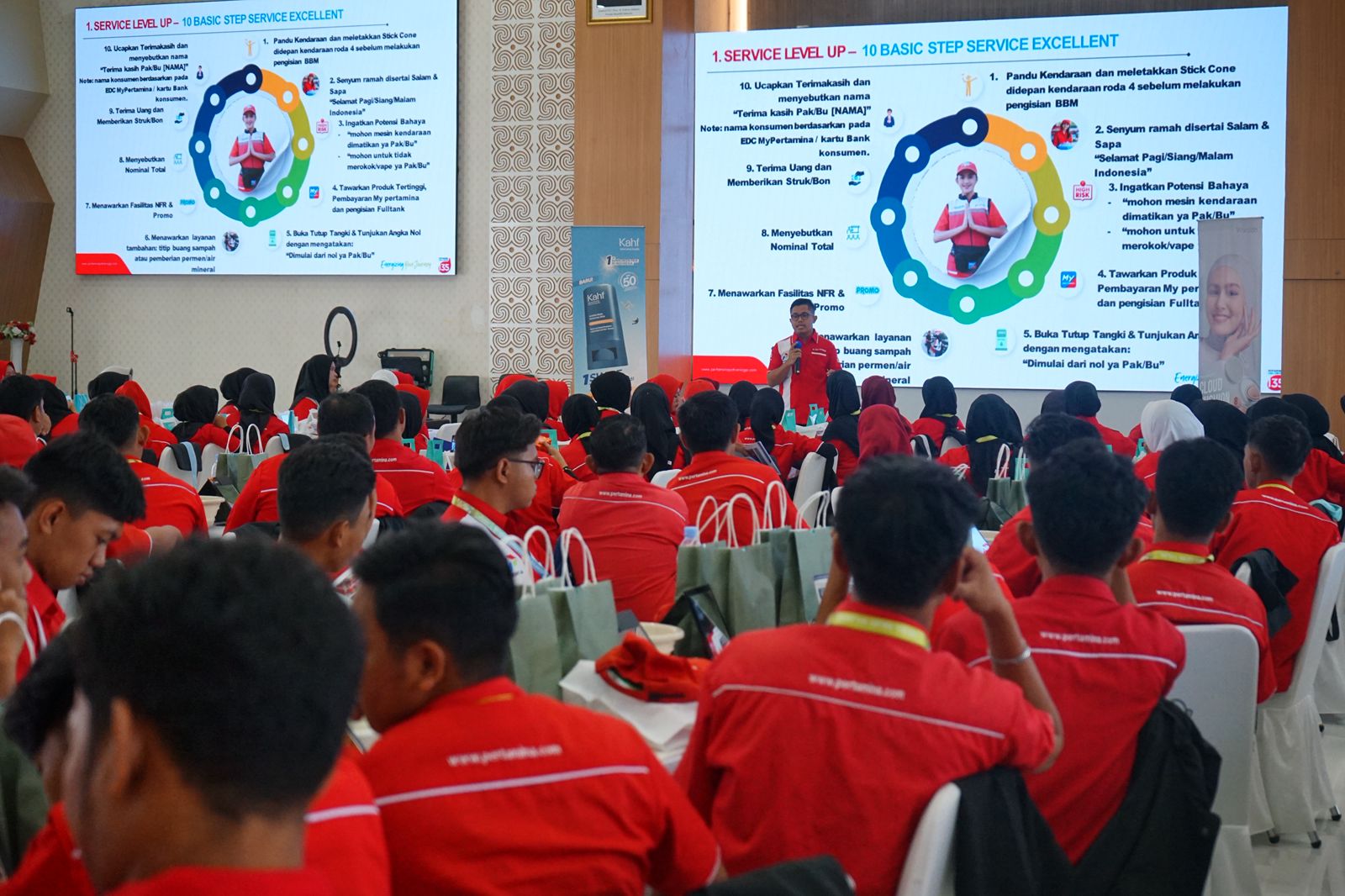 Selain pembekalan mengenai Standar Operasional Pelayanan SPBU (SOP Service Level Up), peserta juga mengikuti beauty class dan personality training bersama Wardah, sesi ice breaking, serta team building di Saung Rindu Alam untuk memperkuat solidaritas dan kekompakan.