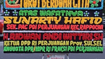 Puluhan karangan bunga tampak berjajar di sekitar rumah duka, datang dari para tokoh nasional seperti Ketua Umum PDI Perjuangan Megawati Soekarnoputri, Ketua DPR RI Puan Maharani, Ketua DPD PDI Perjuangan Sulsel H. Ridwan A. Wittiri, serta kolega dan kerabat lainnya.
